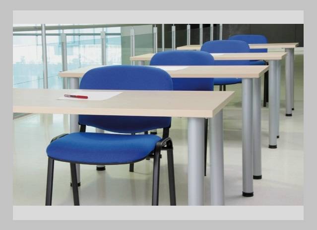 MESAS PATA REDONDA= Mesas más económicas para diversas funciones. De 4 patas de tubo cilíndrico de acero, laminado en frio de 60 mm. de diámetro, pintado epoxi. Es una mesa más simple al prescindir del marco perimetral de las mesas de pata cuadrada. Las demás características son similares a las mesas de estructura perimetral.